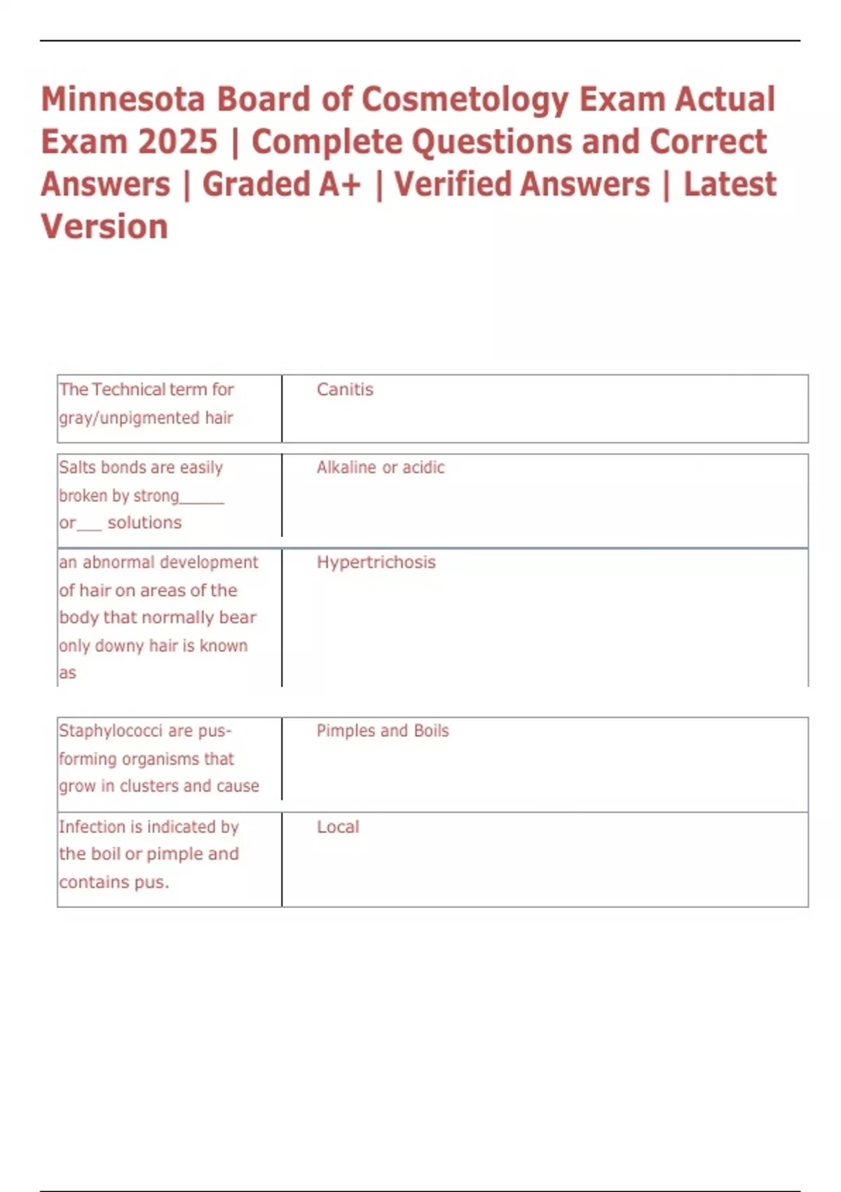 , 8/11/25, 5:38 AM Minnesota Board of Cosmetology Exam Actual Exam 2025 | Complete Questions and Correct Answers | Graded A+ | Verified Answ…