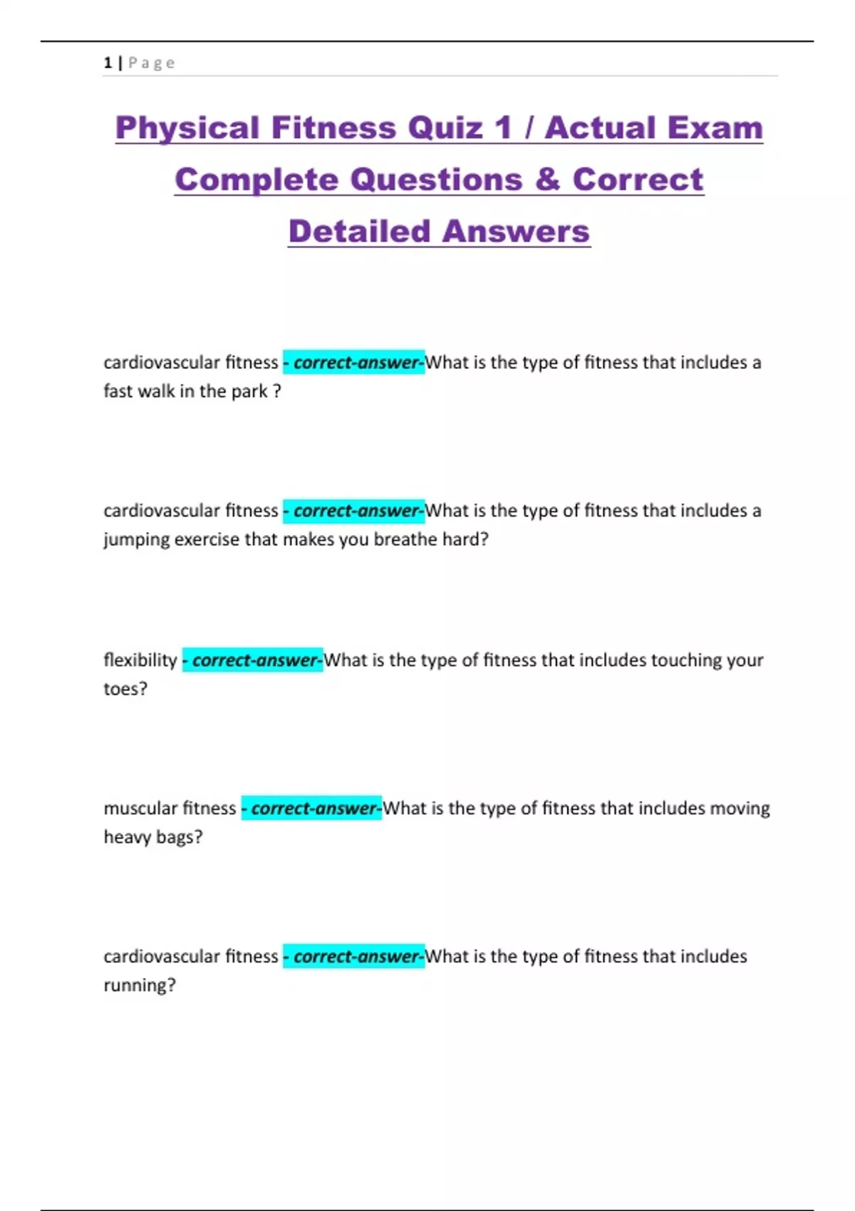 Physical Fitness Quiz 1 / Actual Exam