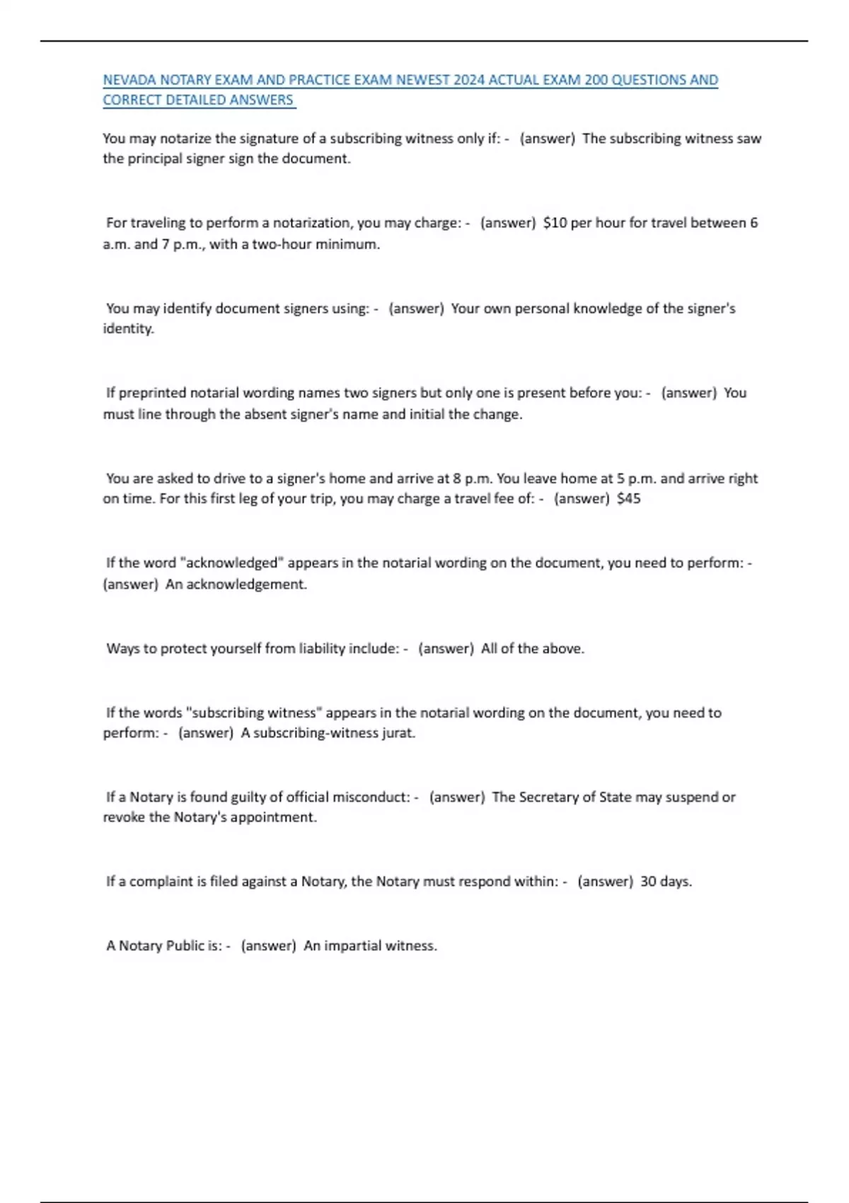 , NEVADA NOTARY EXAM AND PRACTICE EXAM NEWEST 2024 ACTUAL EXAM 200 QUESTIONS AND