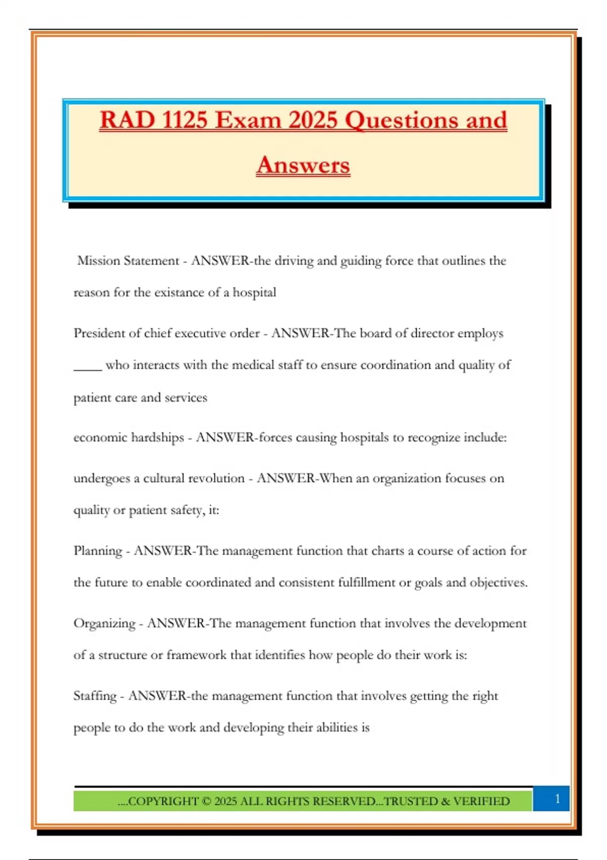 RAD 1125 Exam 2025 Questions and Answers