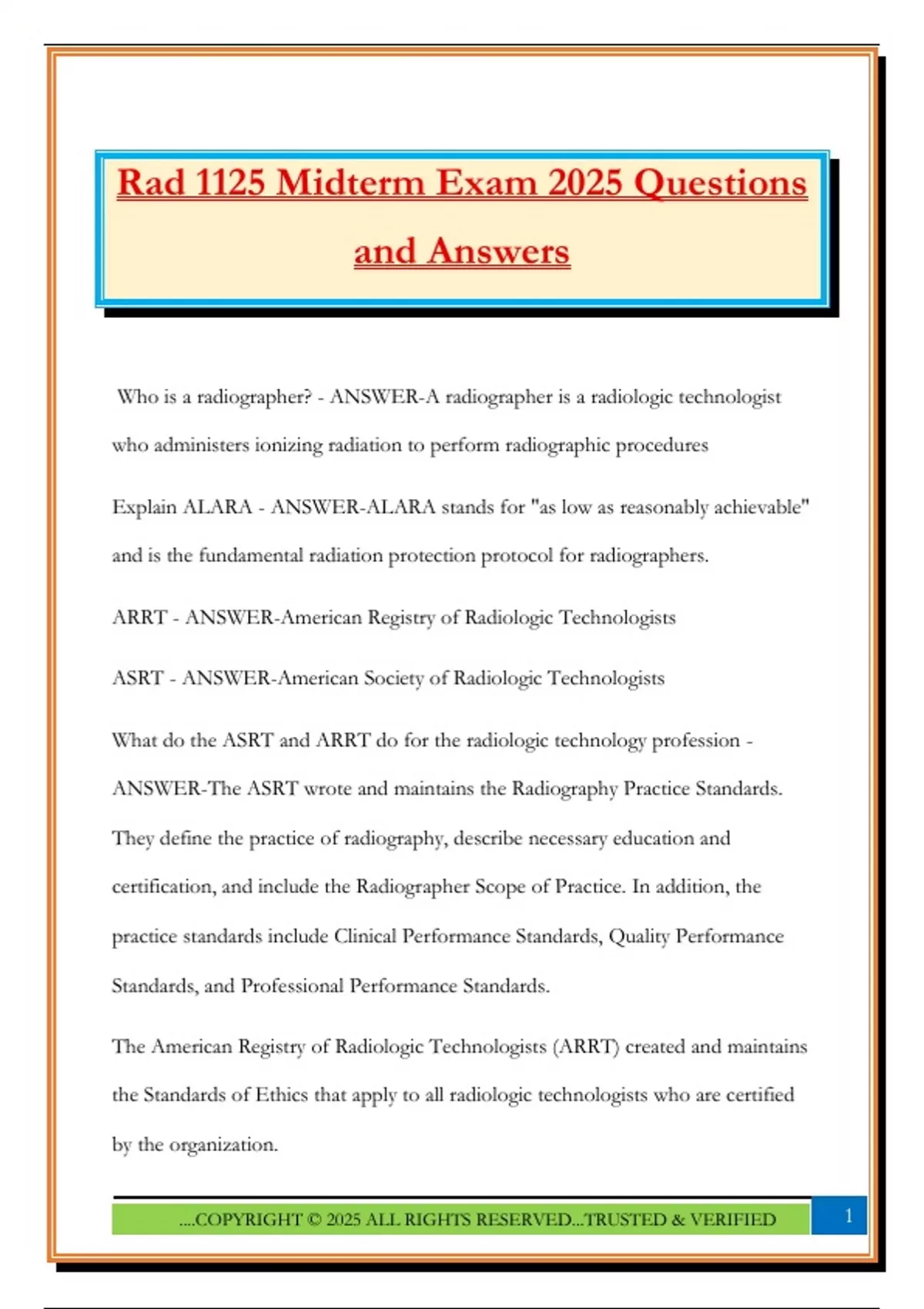 Rad 1125 Midterm Exam 2025 Questions and Answers