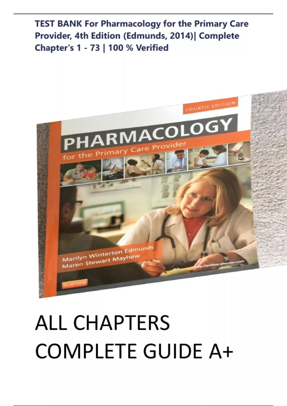 TEST BANK For Pharmacology for the Primary Care Provider, 4th Edition (Edmunds, 2014)| Complete Chapter's 1 - 73 | All Chapters |Latest Version |100 % Verified| Complete Guide A+