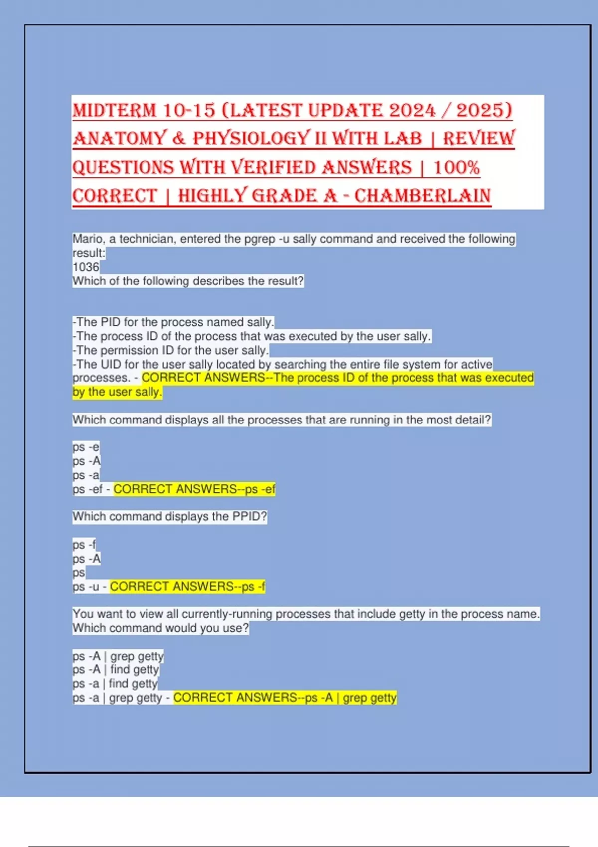 ps -ef - CORRECT ANSWERS--ps -ef