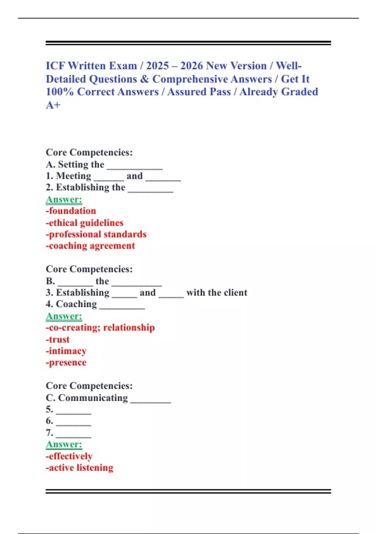 ICF Written Exam / 2025 – 2026 New Version / Well-