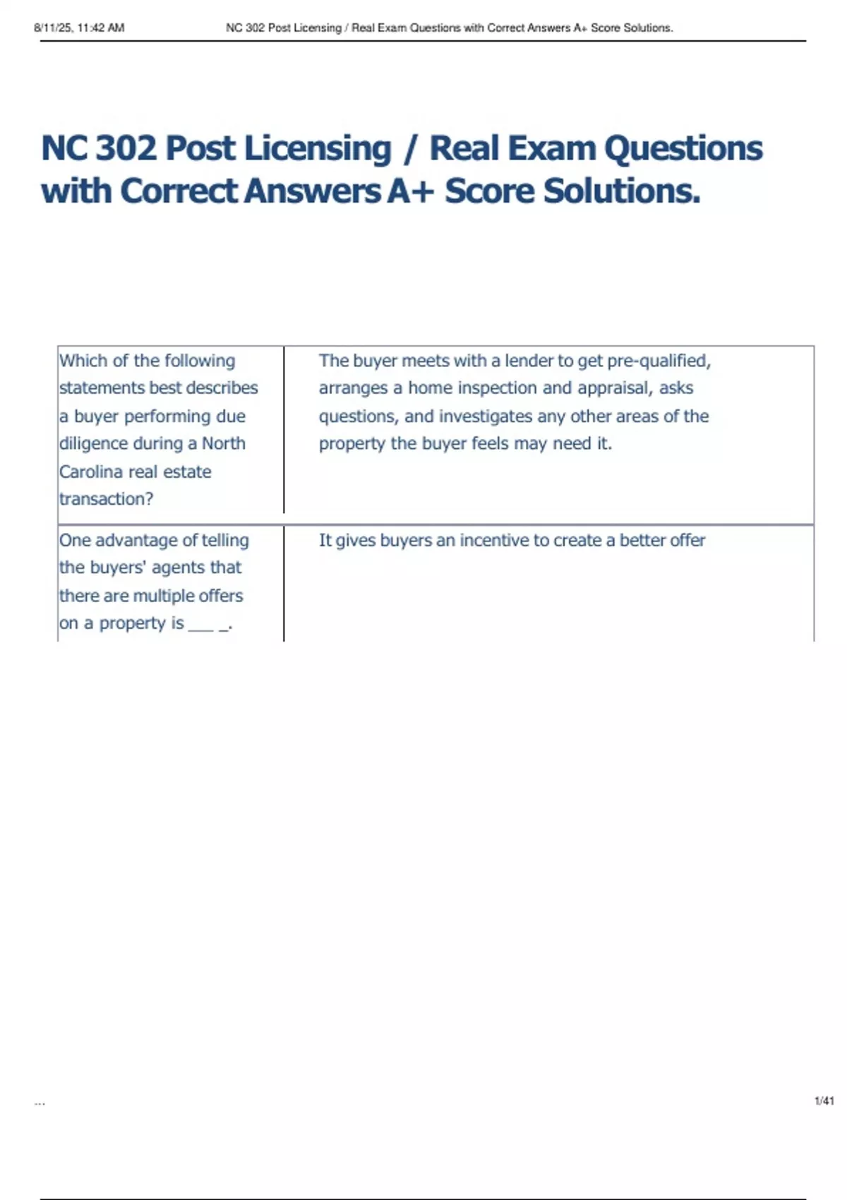 , 8/11/25, 11:42 AM NC 302 Post Licensing / Real Exam Questions with Correct Answers A+ Score Solutions.