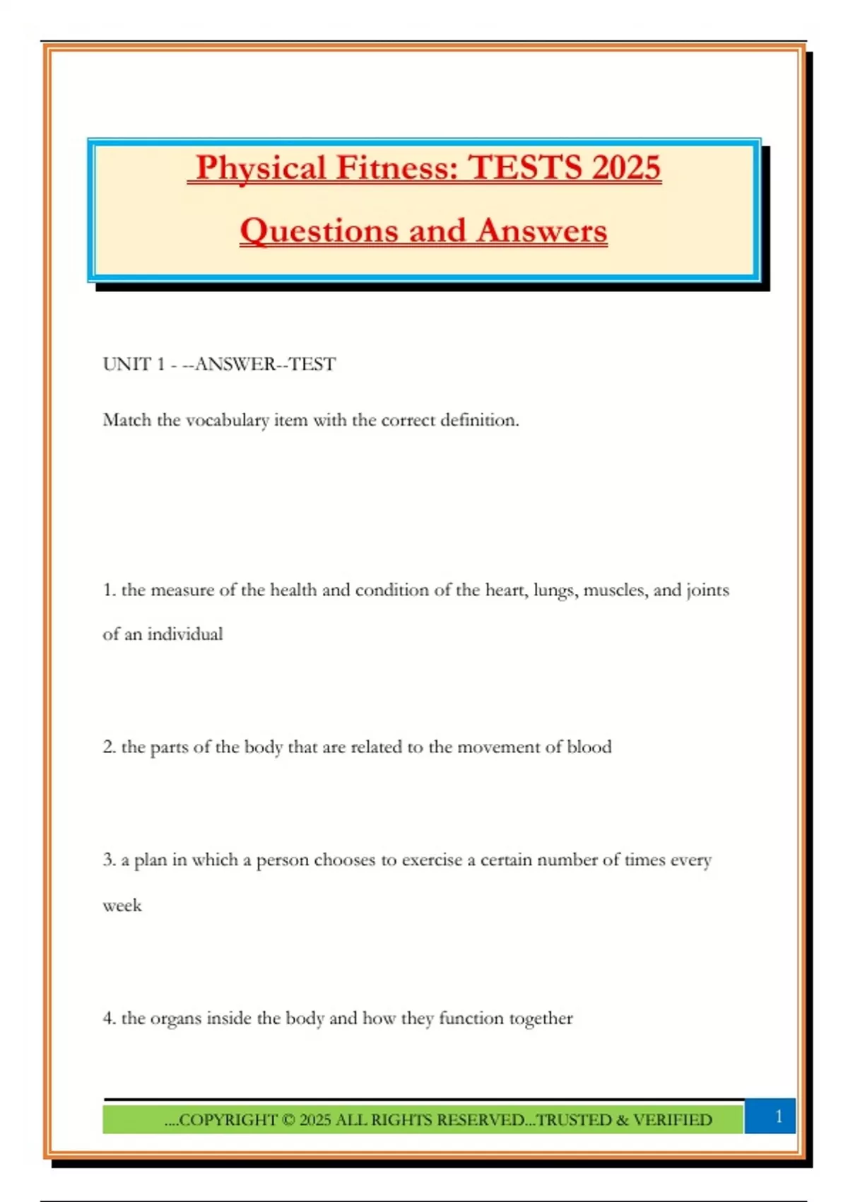 1. the measure of the health and condition of the heart, lungs, muscles, and joints