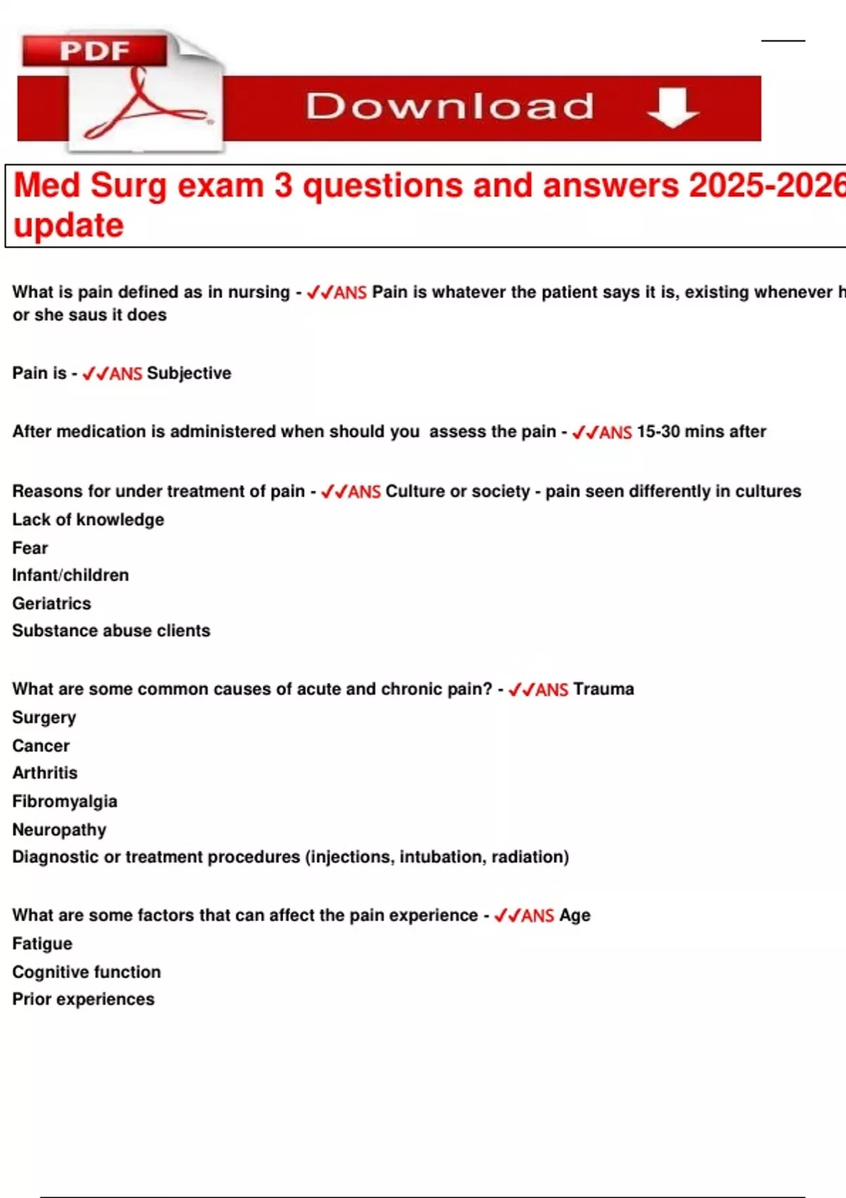 Med Surg exam 3 questions and answers 2025-2026