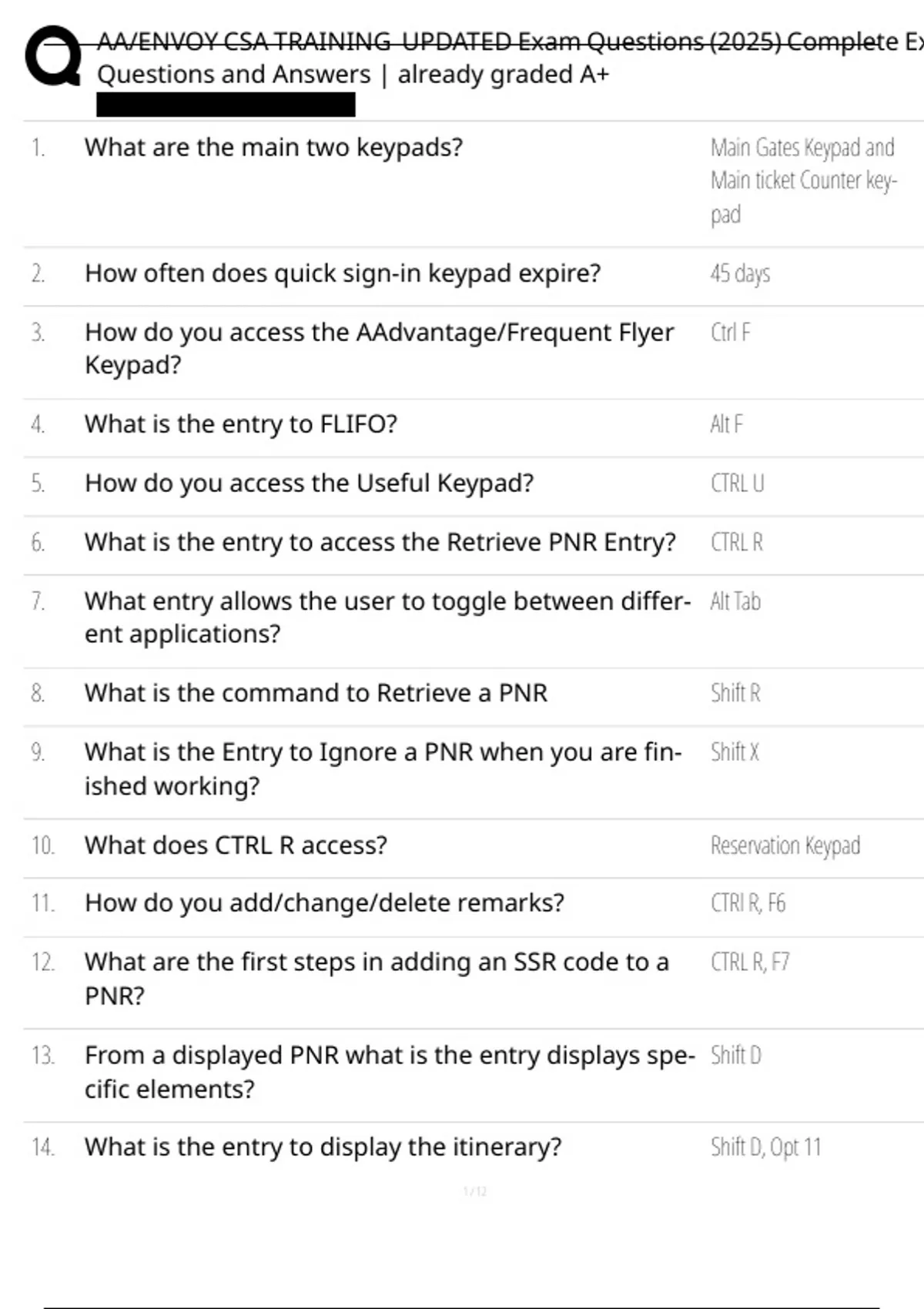 AA/ENVOY CSA TRAINING UPDATED Exam Questions (2025) Complete ExamQuestions and Answers | already graded A+
