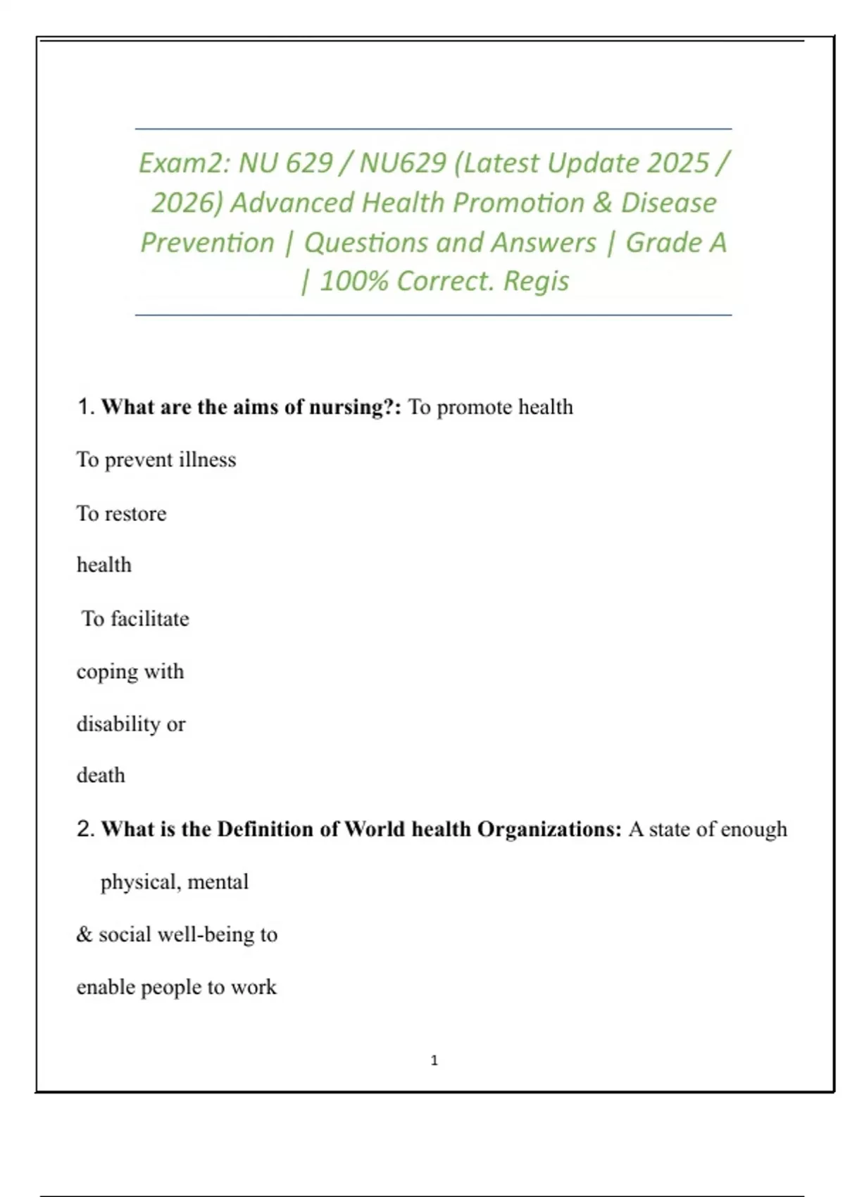 1. What are the aims of nursing?: To promote health