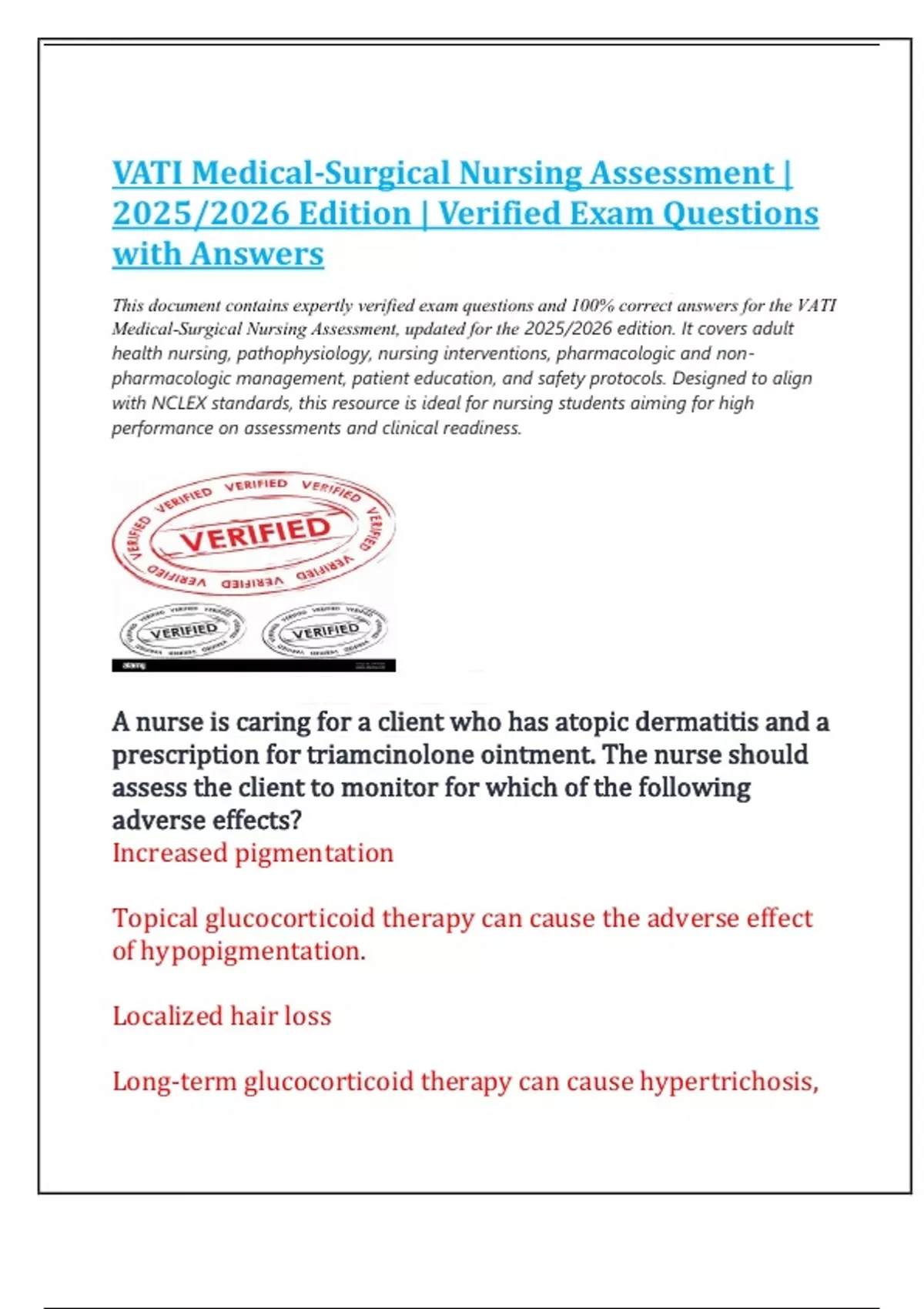VATI Medical-Surgical Nursing Assessment | 2025/2026 Edition | Verified Exam Questions with Answers