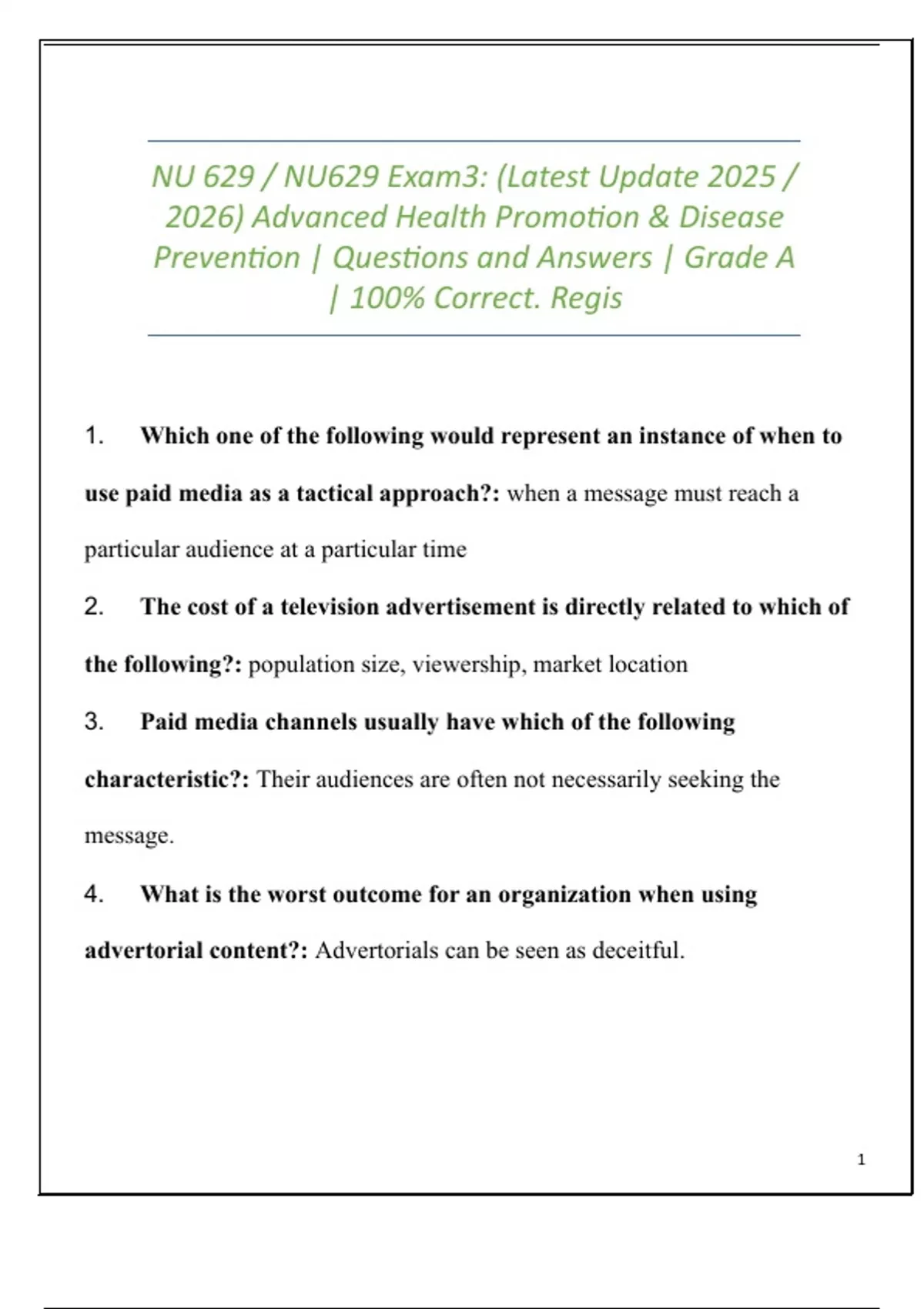 Exam3: NU 629 / NU629(Latest Update 2025 / 2026) Advanced Health Promotion & Disease Prevention | Questions and Answers | Grade A | 100% Correct. RegisExam3: NU 629 / NU629(Latest Update 2025 / 2026) Advanced Health Promotion & Disease Prevention | Questions and Answers | Grade A | 100% Correct. RegisExam3: NU 629 / NU629(Latest Update 2025 / 2026) Advanced Health Promotion & Disease Prevention | Questions and Answers | Grade A | 100% Correct. RegisExam3: NU 629 / NU629(Latest Update 2025 / 2026) Advanced Health Promotion & Disease Prevention | Questions and Answers | Grade A | 100% Correct. Regis
