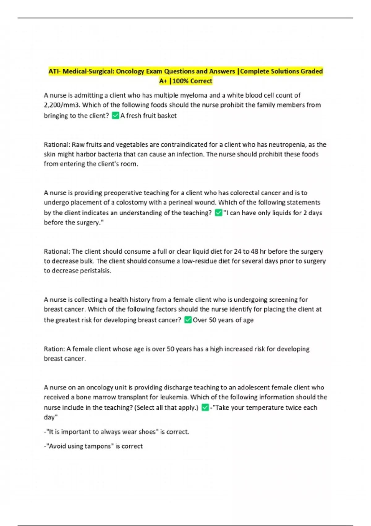 ATI- Medical-Surgical: Oncology Exam Questions and Answers |Complete Solutions Graded A+ |100% Correct