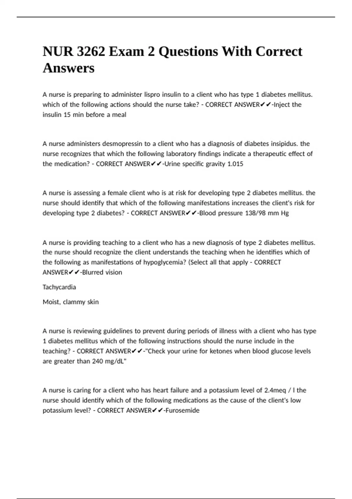 NUR 3262 Exam 2 Questions With Correct Answers.