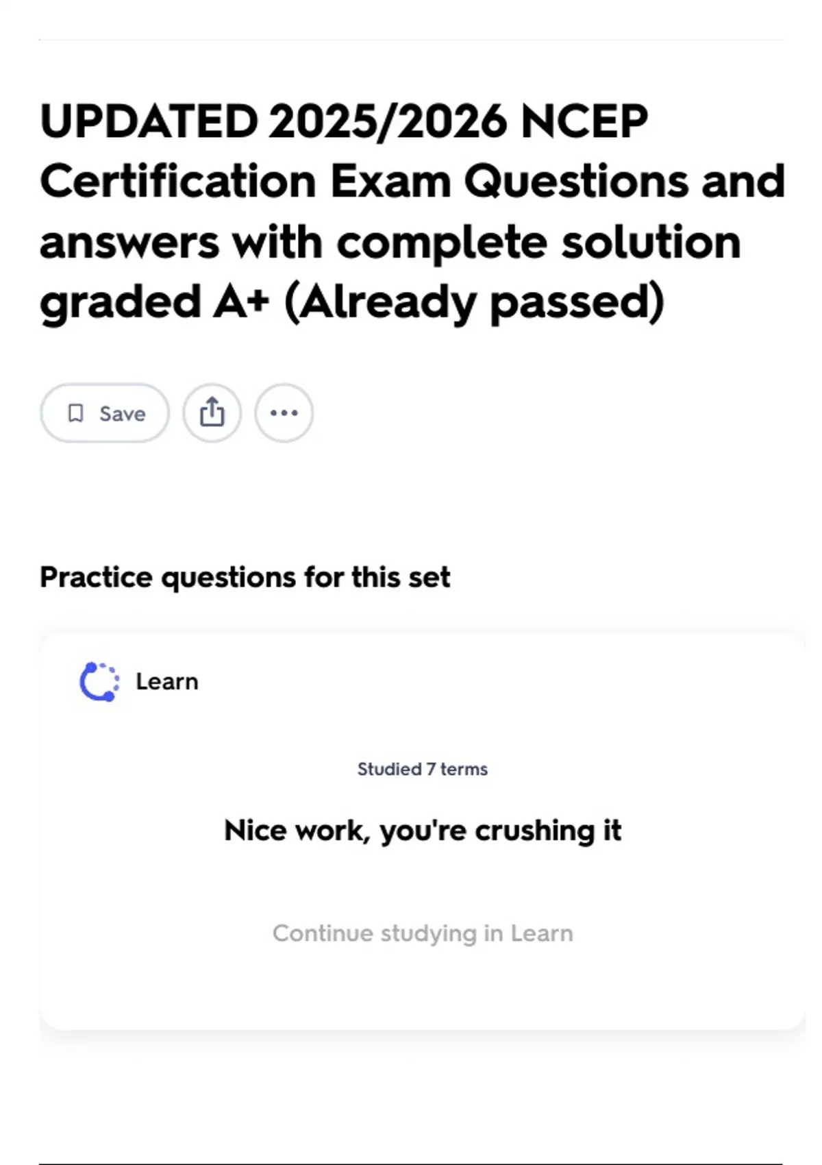 UPDATED 2025/2026 NCEP Certification Exam Questions and answers with complete solution graded A+ (Already passed)