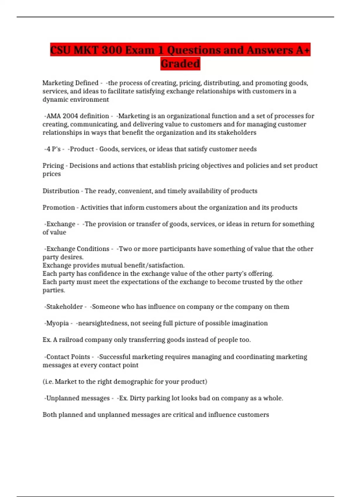 CSU MKT 300 Exam 1 Questions and Answers A+ Graded