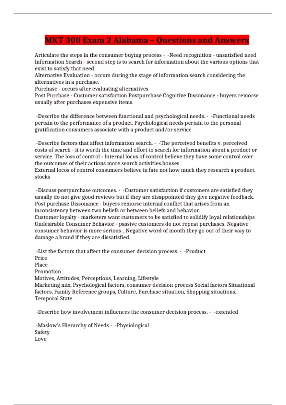MKT 300 Exam 2 Alabama – Questions and Answers