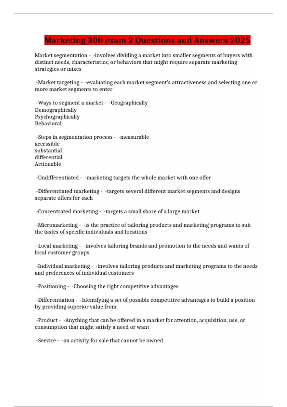 Marketing 300 exam 2 Questions and Answers 2025