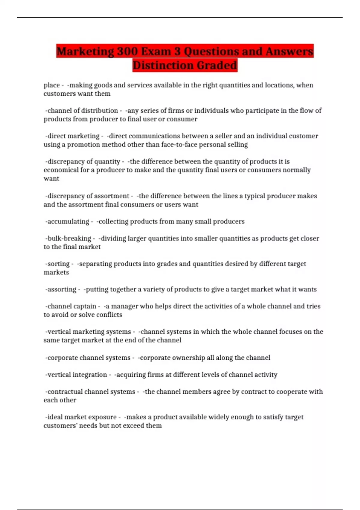 Marketing 300 Exam 3 Questions and Answers Distinction Graded