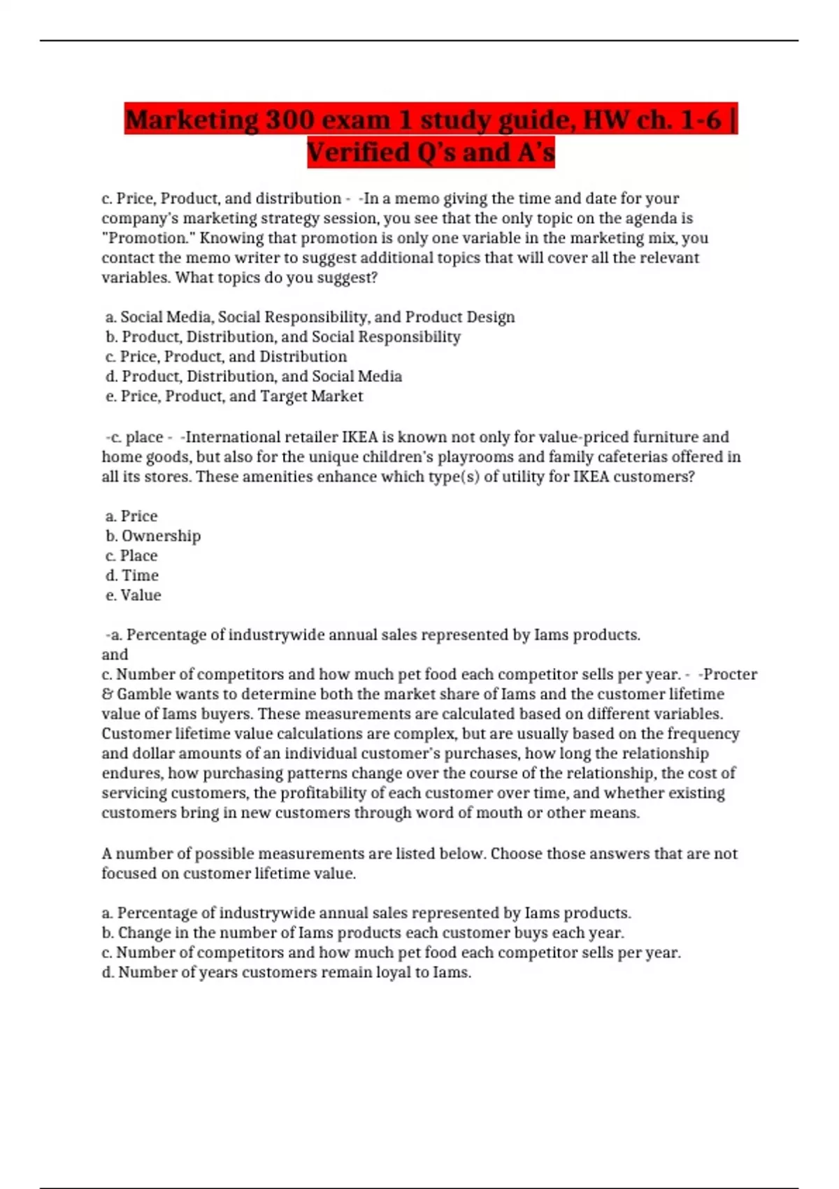 Marketing 300 exam 1 study guide, HW ch. 1-6 |Verified Q’s and A’s