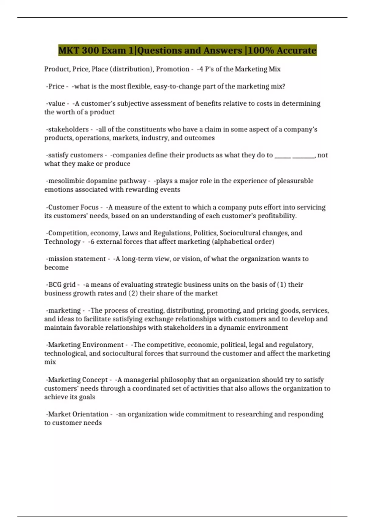 MKT 300 Exam 1|Questions and Answers |100% Accurate