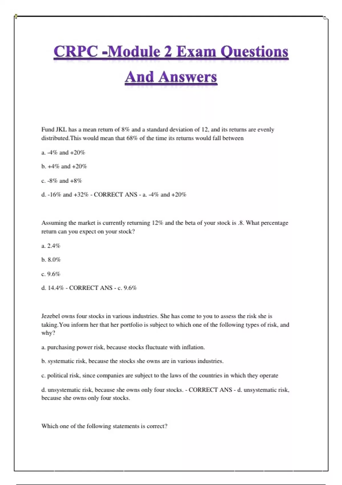 d. unsystematic risk, because she owns only four stocks. - CORRECT ANS - d. unsystematic risk,