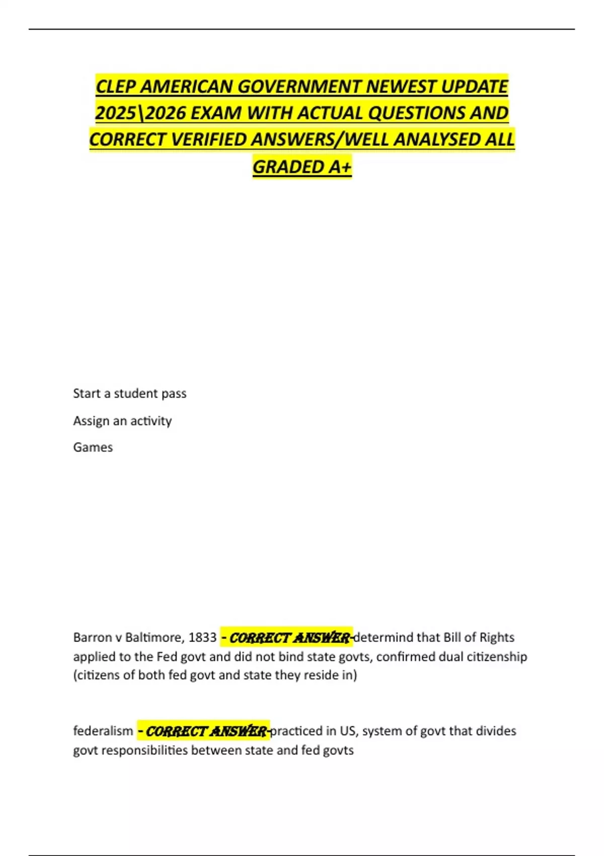 CLEP AMERICAN GOVERNMENT NEWEST UPDATE