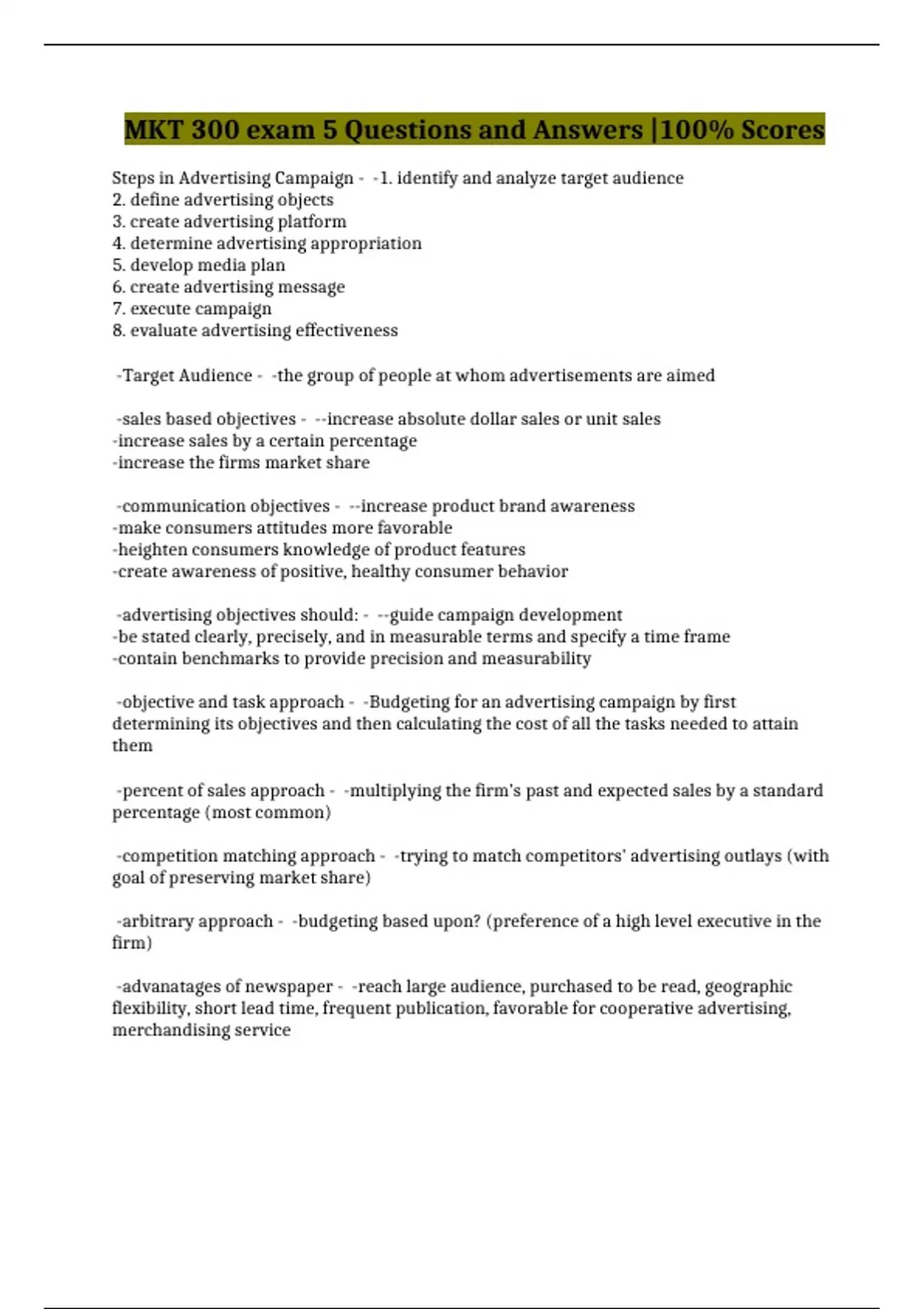 MKT 300 exam 5 Questions and Answers |100% Scores