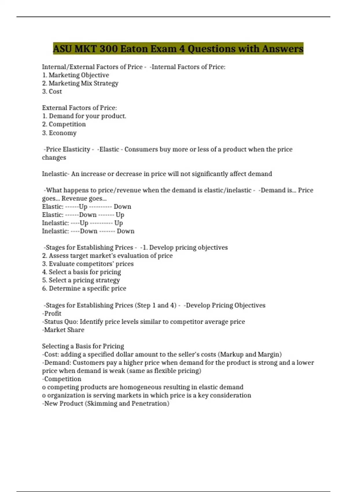 -Stages for Establishing Prices (Step 1 and 4) - -Develop Pricing Objectives