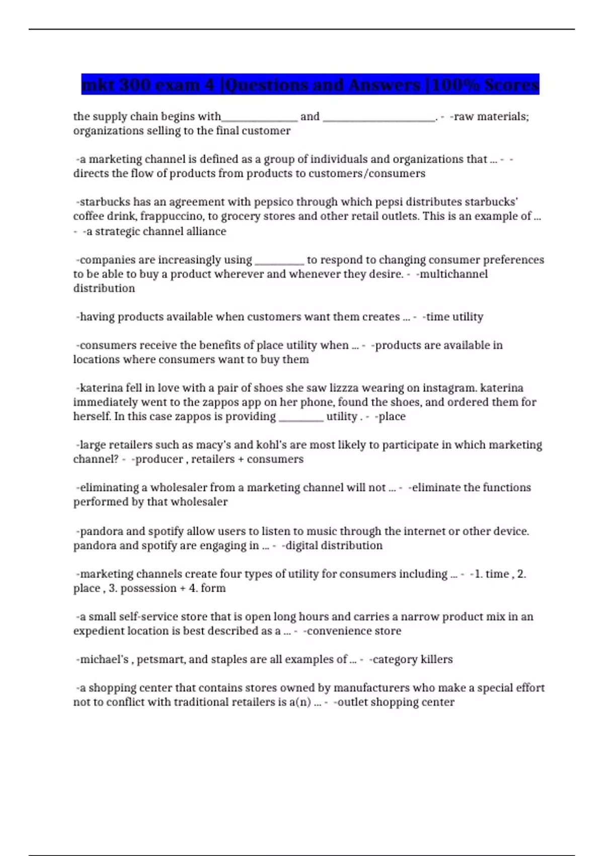 mkt 300 exam 4 |Questions and Answers |100% Scores