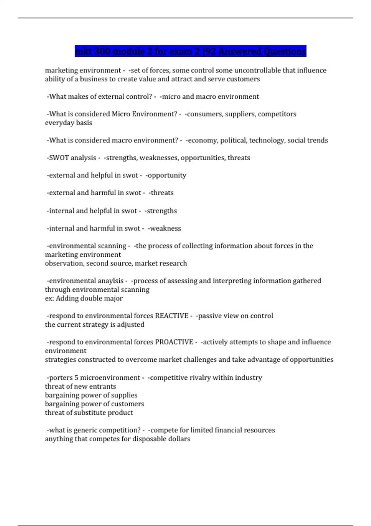 mkt 300 module 2 for exam 2 |92 Answered Questions