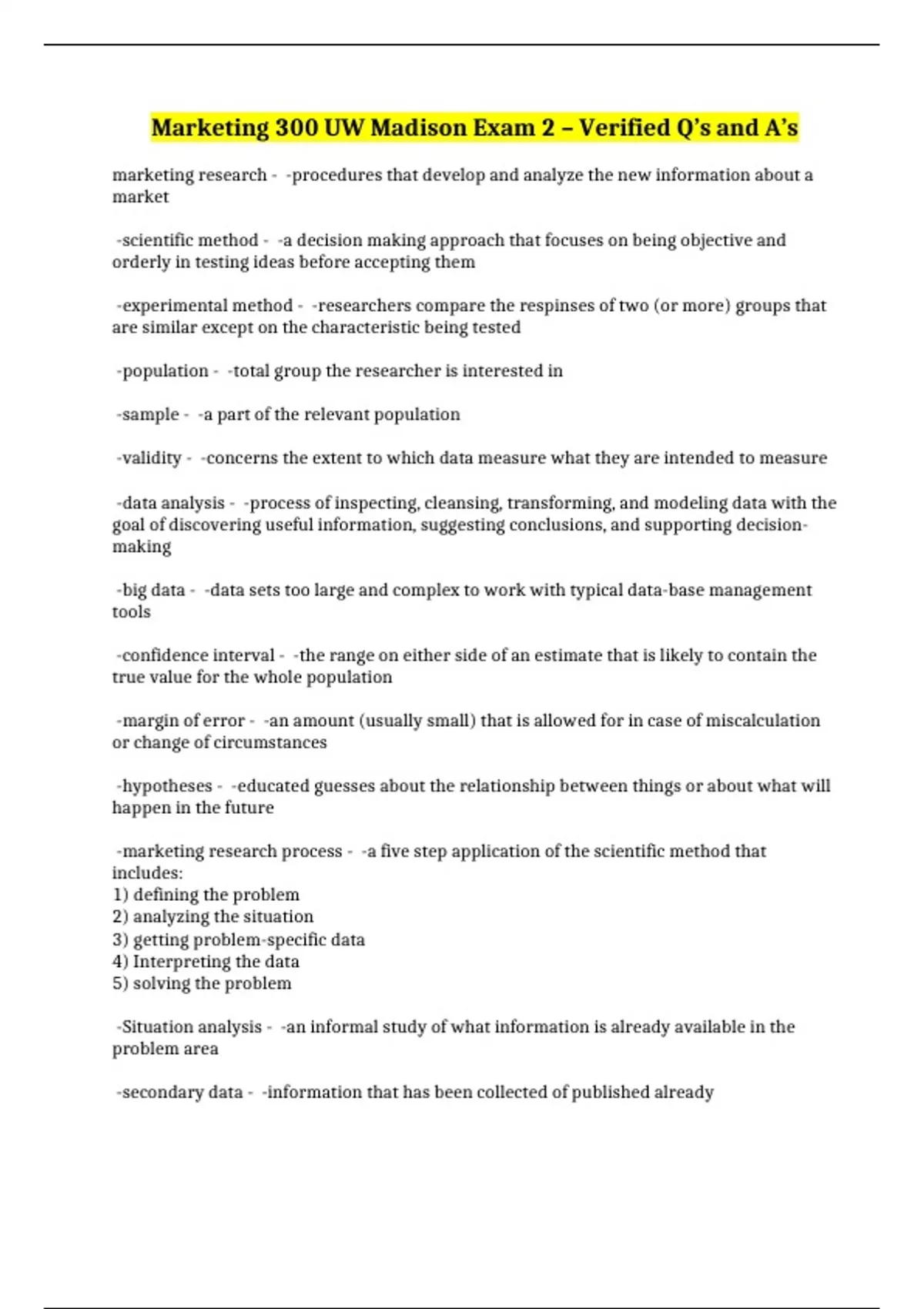 Marketing 300 UW Madison Exam 2 – Verified Q’s and A’s