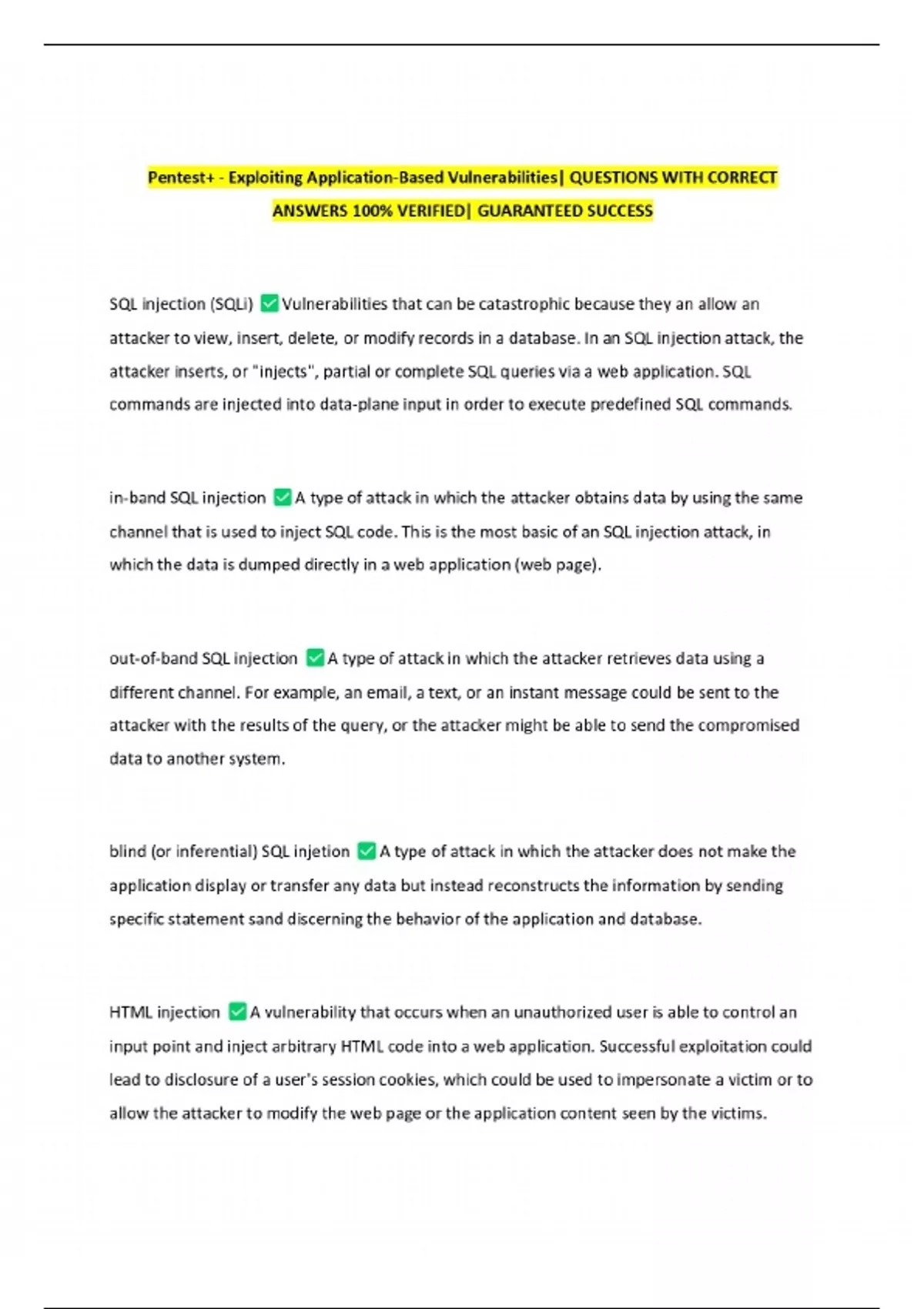 Pentest+ - Exploiting Application-Based Vulnerabilities| QUESTIONS WITH CORRECT ANSWERS 100% VERIFIED| GUARANTEED SUCCESS