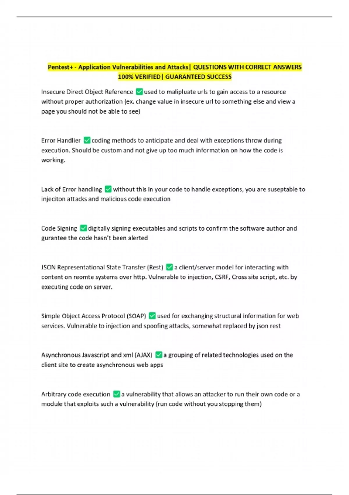 Pentest+ - Application Vulnerabilities and Attacks| QUESTIONS WITH CORRECT ANSWERS 100% VERIFIED| GUARANTEED SUCCESS