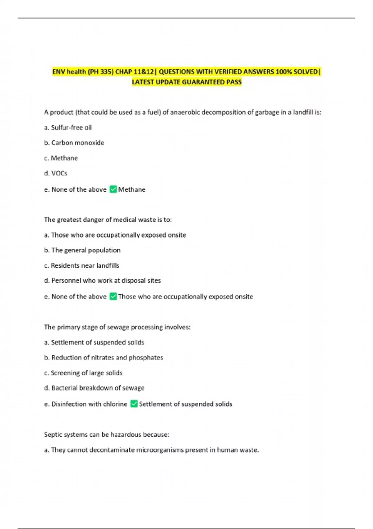 ENV health (PH 335) CHAP 11&12| QUESTIONS WITH VERIFIED ANSWERS 100% SOLVED| LATEST UPDATE GUARANTEED PASS