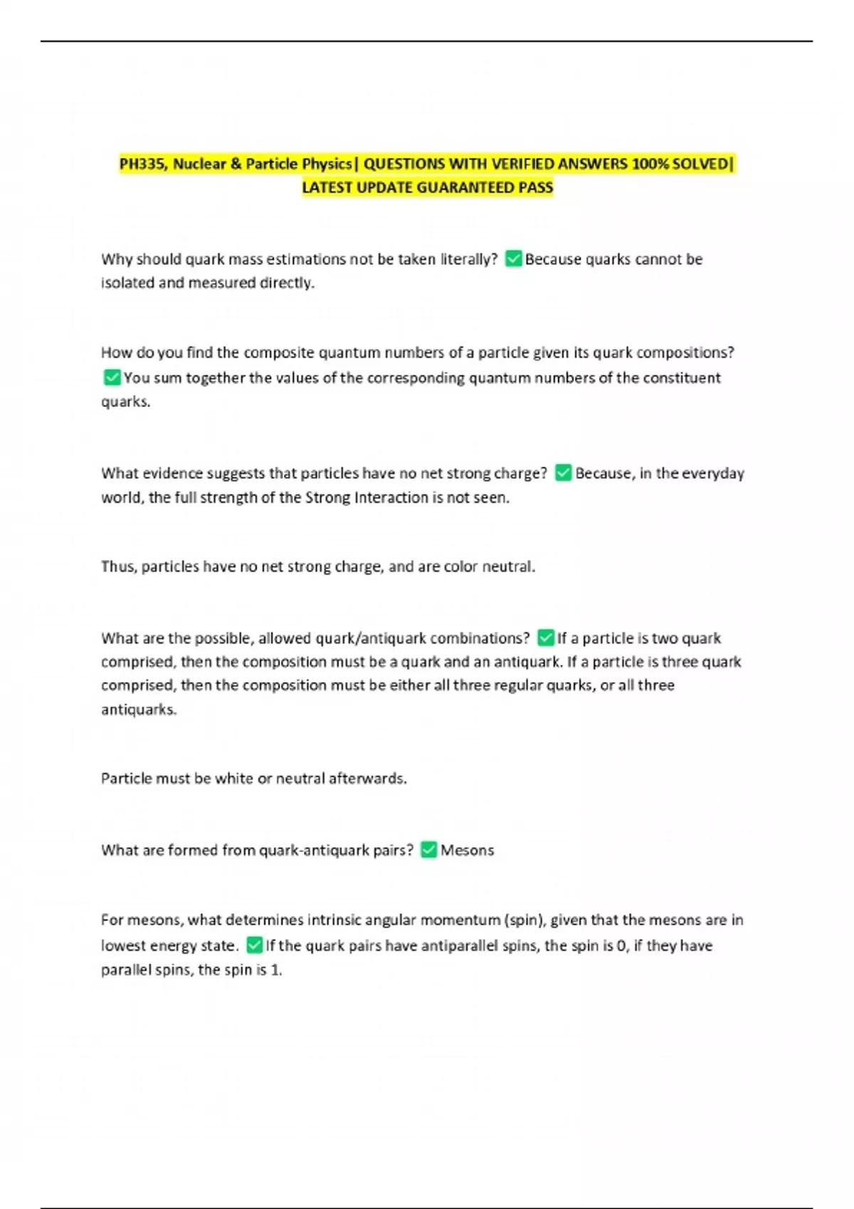 PH335, Nuclear & Particle Physics| QUESTIONS WITH VERIFIED ANSWERS 100% SOLVED| LATEST UPDATE GUARANTEED PASS