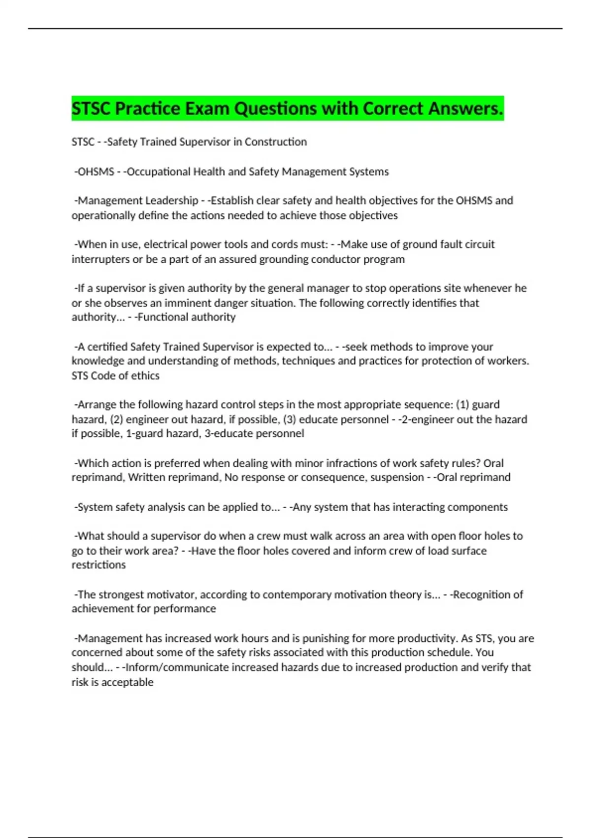 STSC Practice Exam Questions With Correct Answers.
