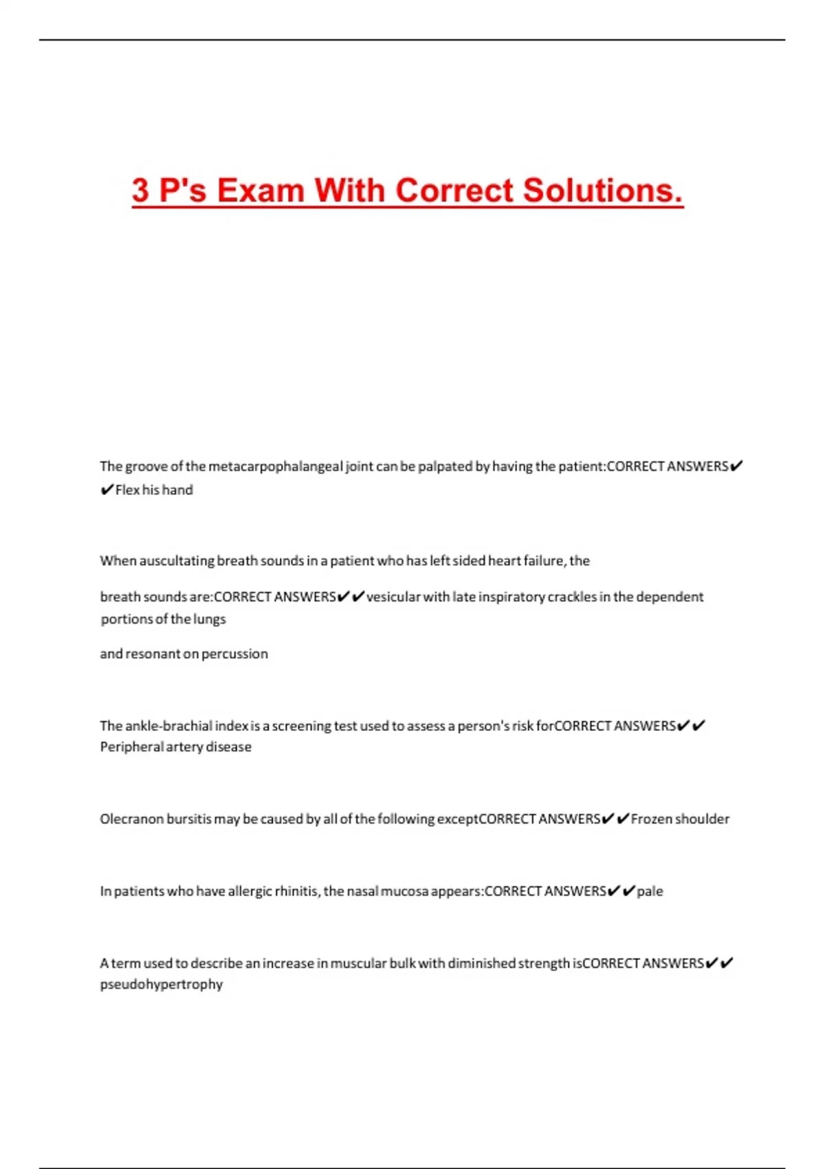 A term used to describe an increase in muscular bulk with diminished strength isCORRECT ANSWERS✔✔