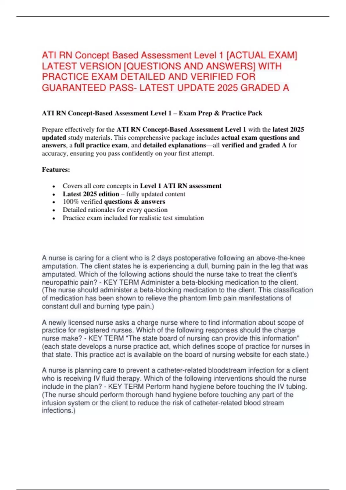 • Covers all core concepts in Level 1 ATI RN assessment