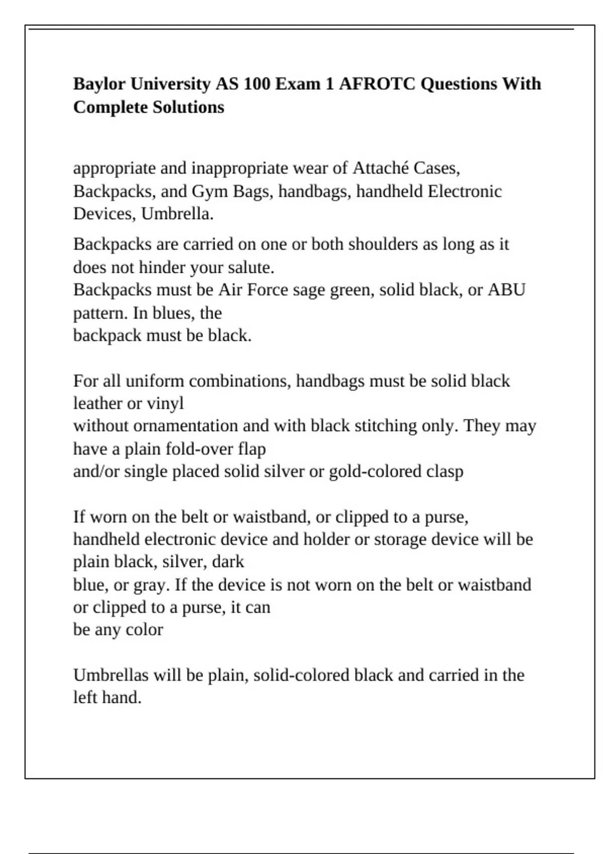 Baylor University AS 100 Exam 1 AFROTC Questions With Complete Solutions
