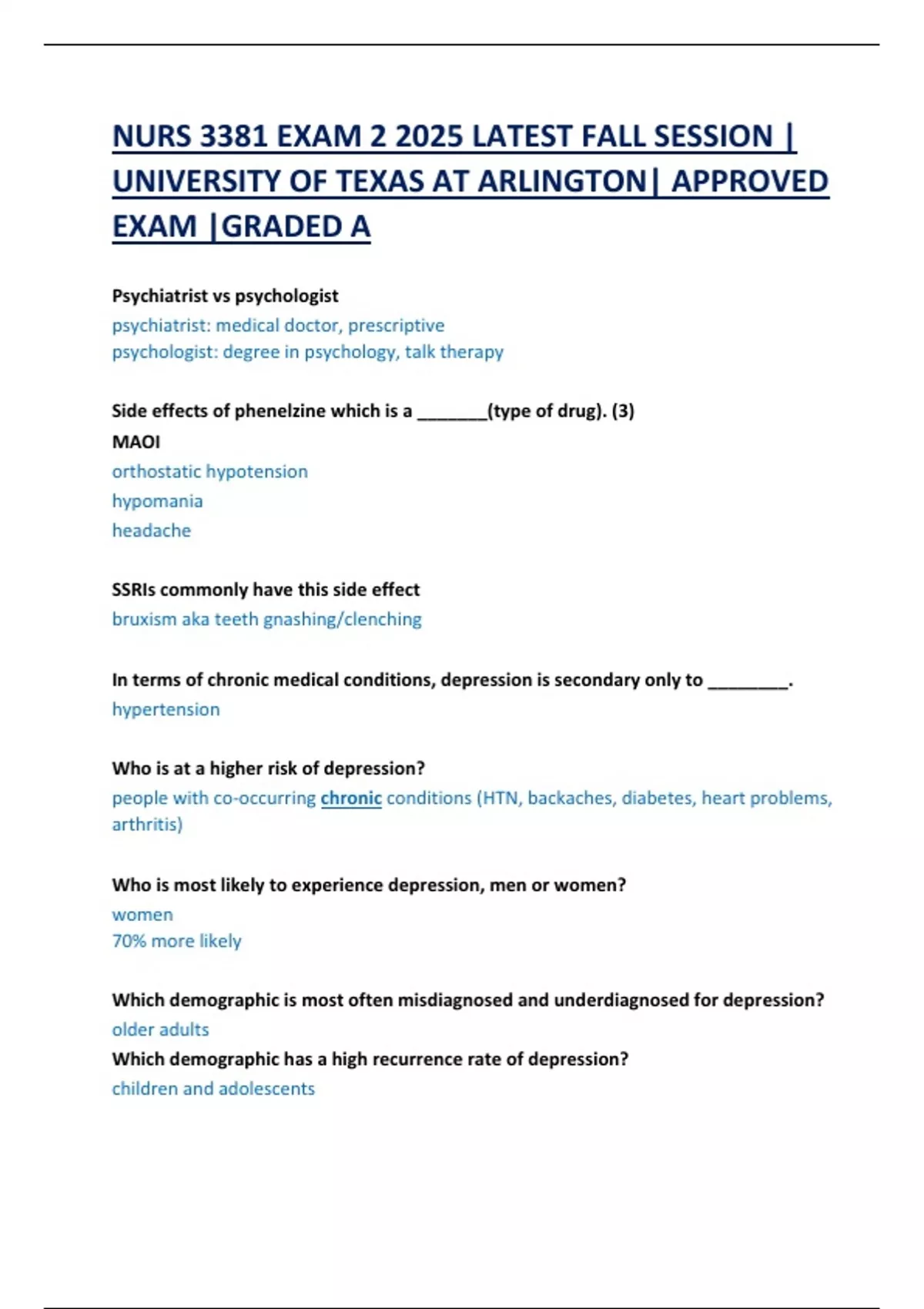 NURS 3381 EXAM 2 2025 LATEST FALL SESSION |