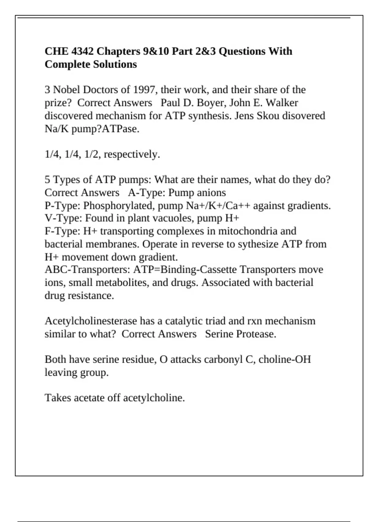 CHE 4342 Chapters 9&10 Part 2&3 Questions With Complete Solutions