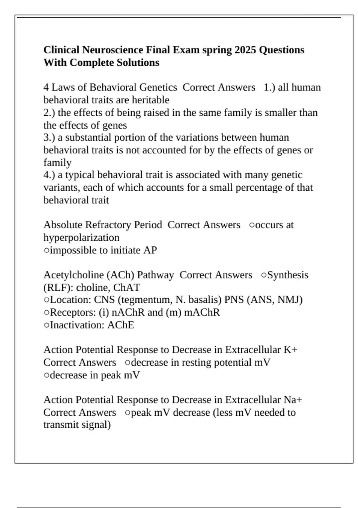 Clinical Neuroscience Final Exam spring 2025 Questions With Complete Solutions