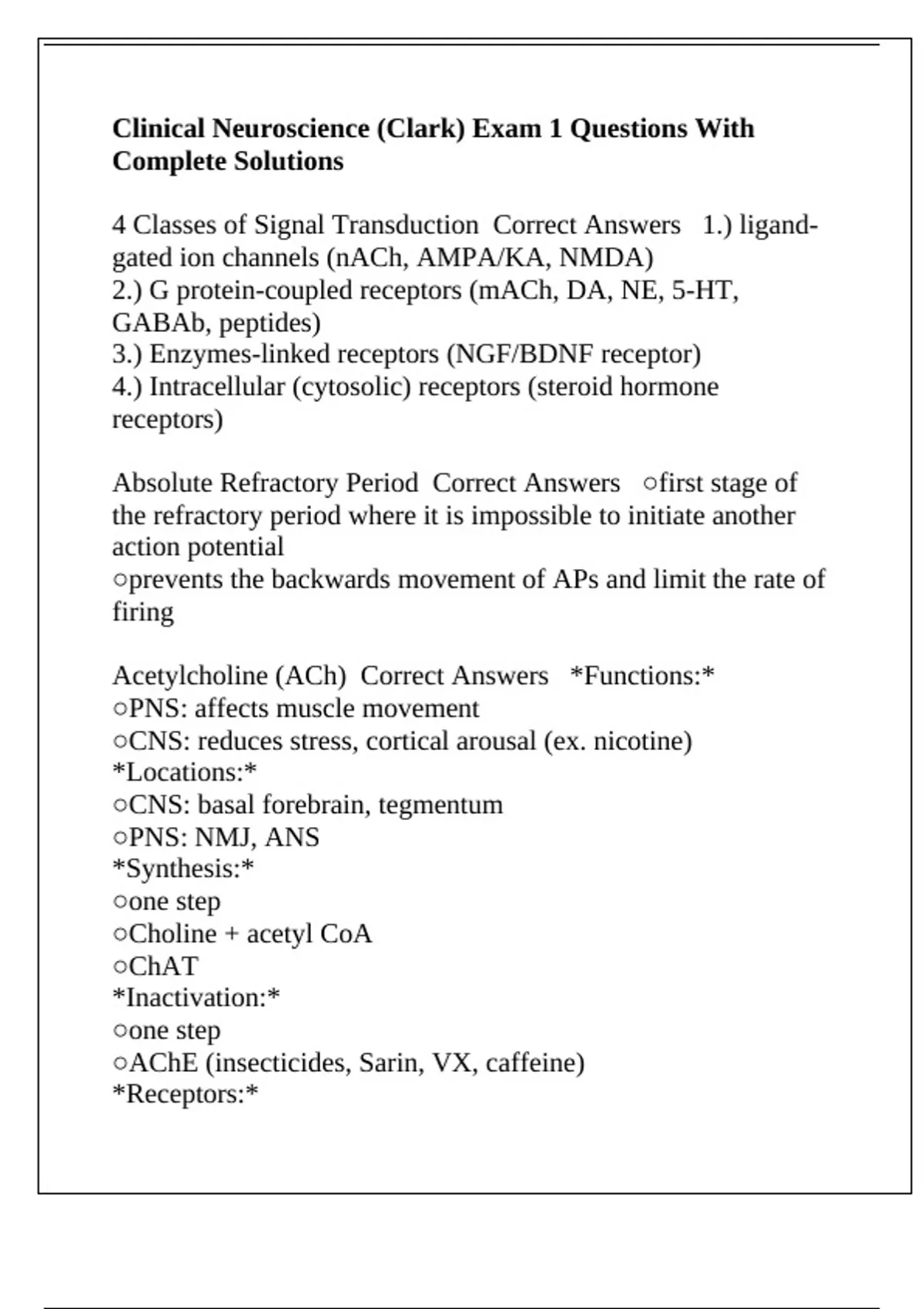 ACh Receptors (nAChR) Correct Answers ○ionotropic