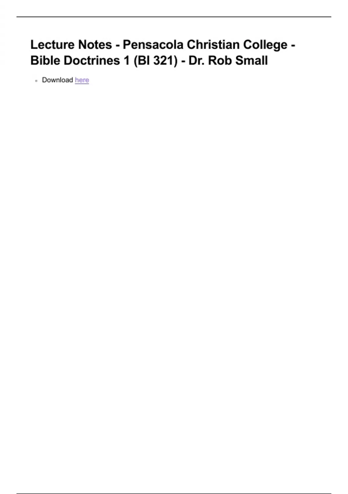 Lecture Notes - Pensacola Christian College - Bible Doctrines 1 (BI 321) - Dr. Rob Small