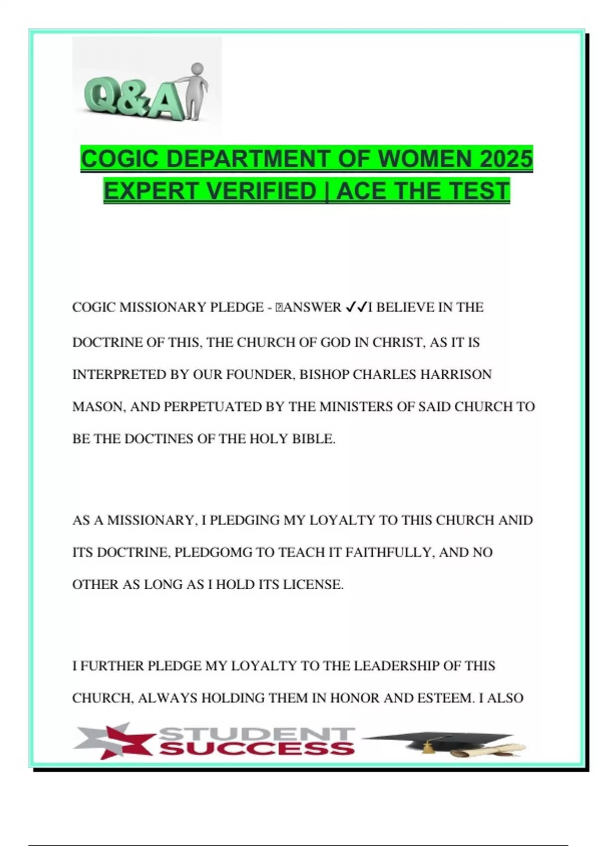 COGIC MISSIONARY PLEDGE - 🧠ANSWER ✔✔I BELIEVE IN THE