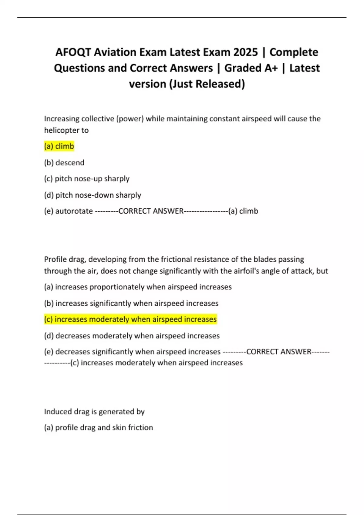(e) autorotate ---------CORRECT ANSWER-----------------(a) climb