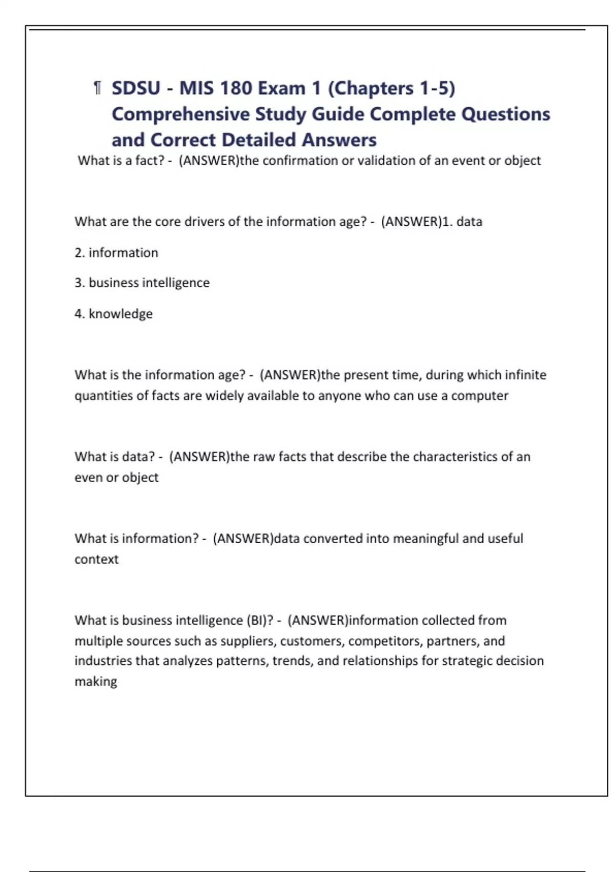 SDSU - MIS 180 Exam 1 (Chapters 1-5) Comprehensive Study Guide Complete Questions and Correct Detailed Answers