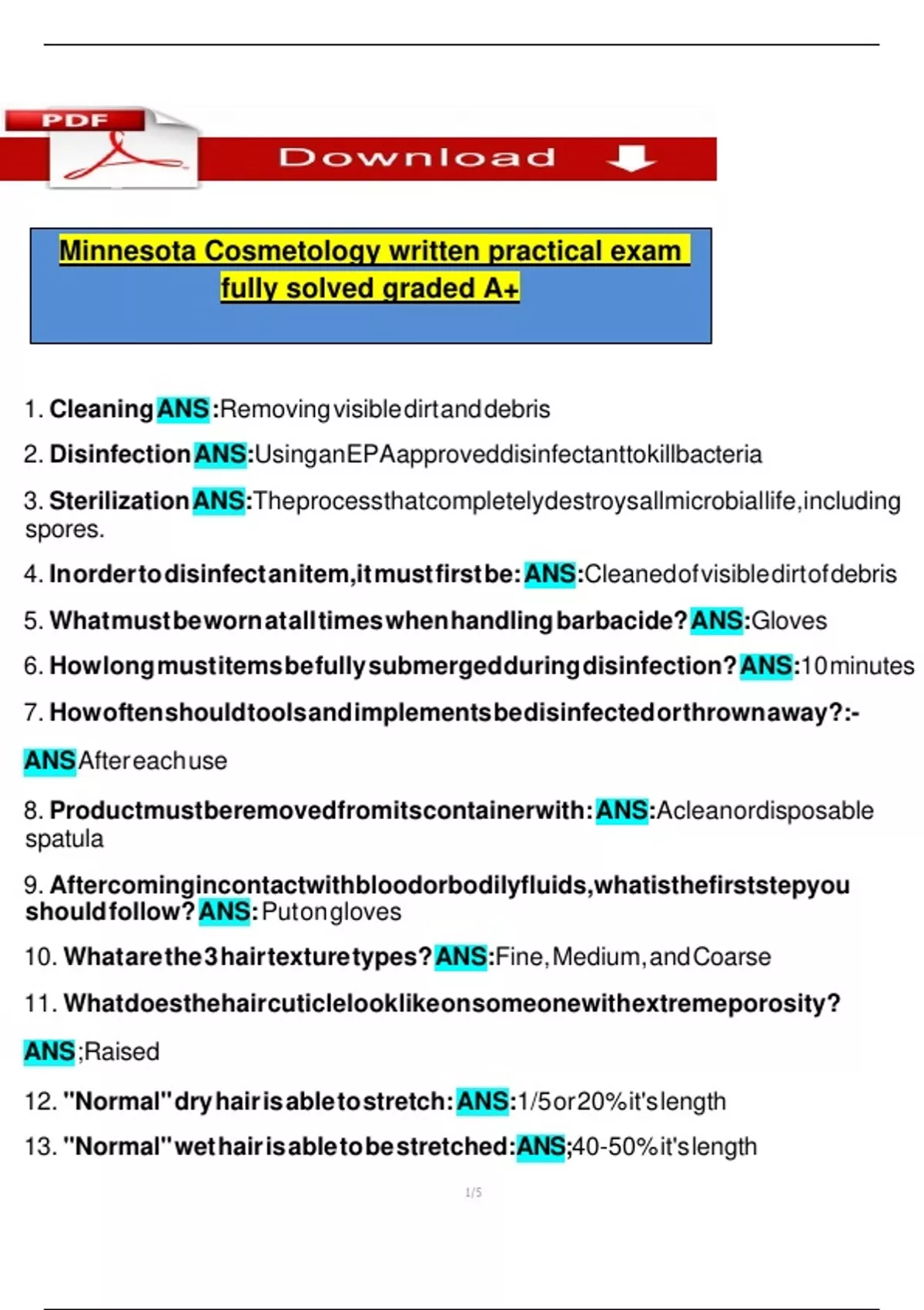 Minnesota Cosmetology written practical exam