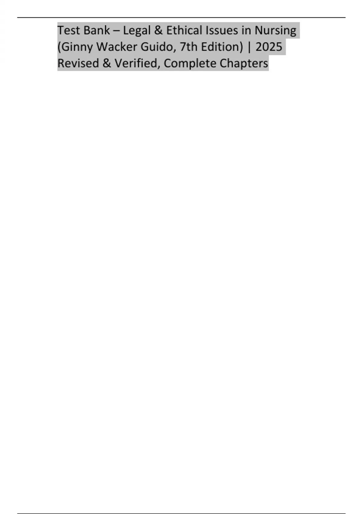 Guido, Legal and Ethical Issues in Nursing, 7th edition , Test Bank
