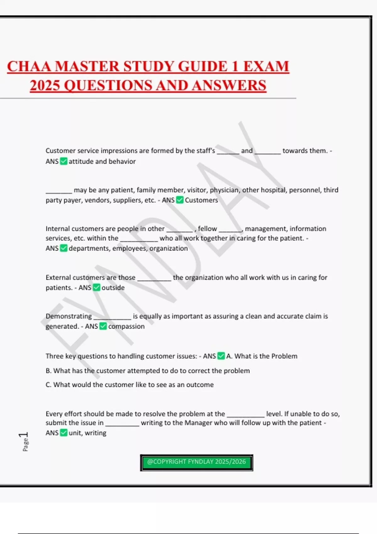CHAA MASTER STUDY GUIDE 1 EXAM